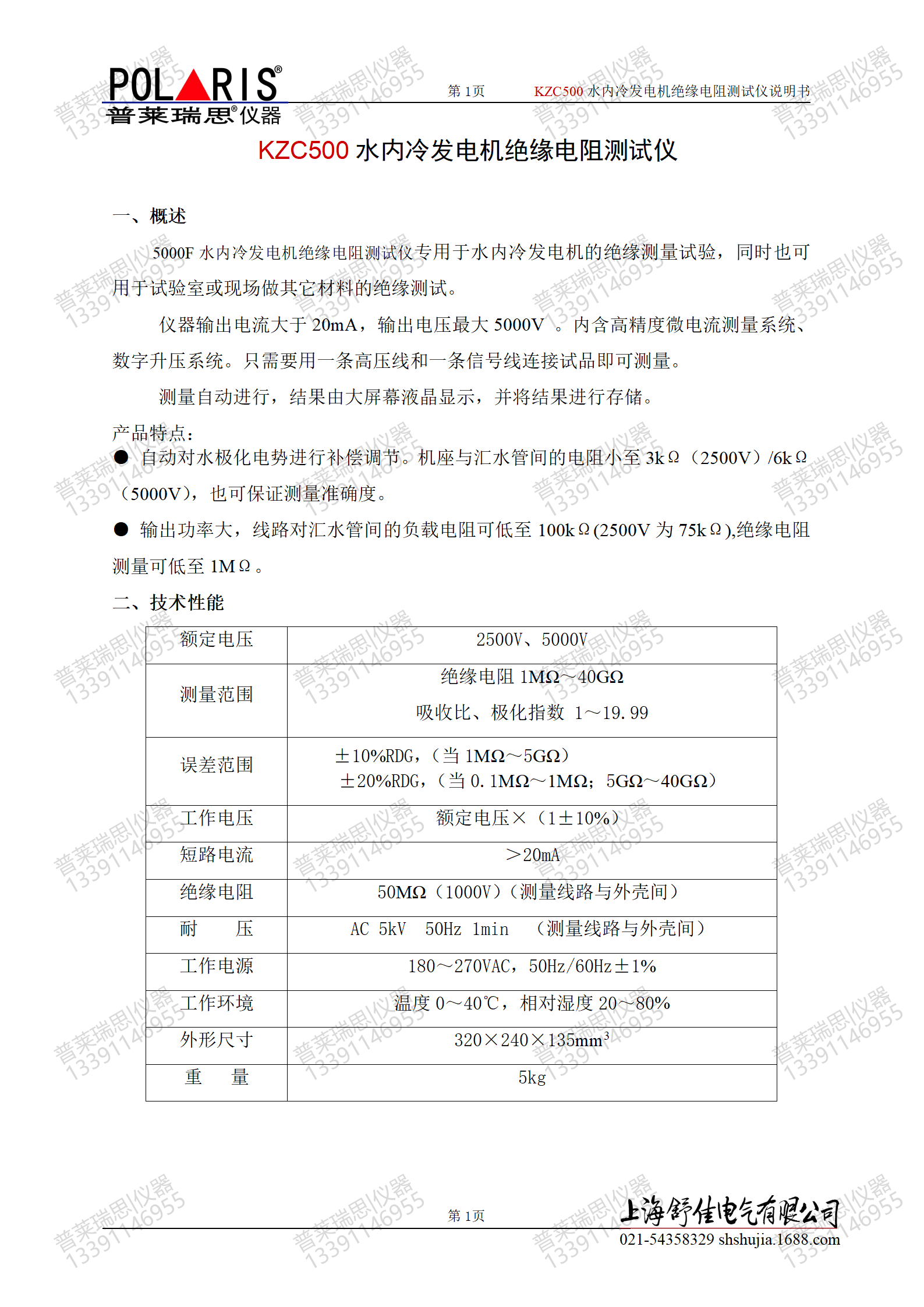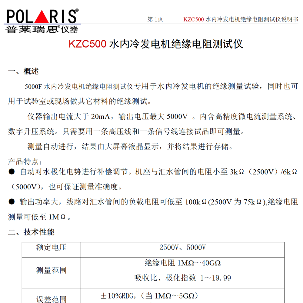 ● 自动对水极化电势进行补偿调节。机座与汇水管间的电阻小至3kΩ(2500V)/6kΩ(5000V),也可保证测量准确度。