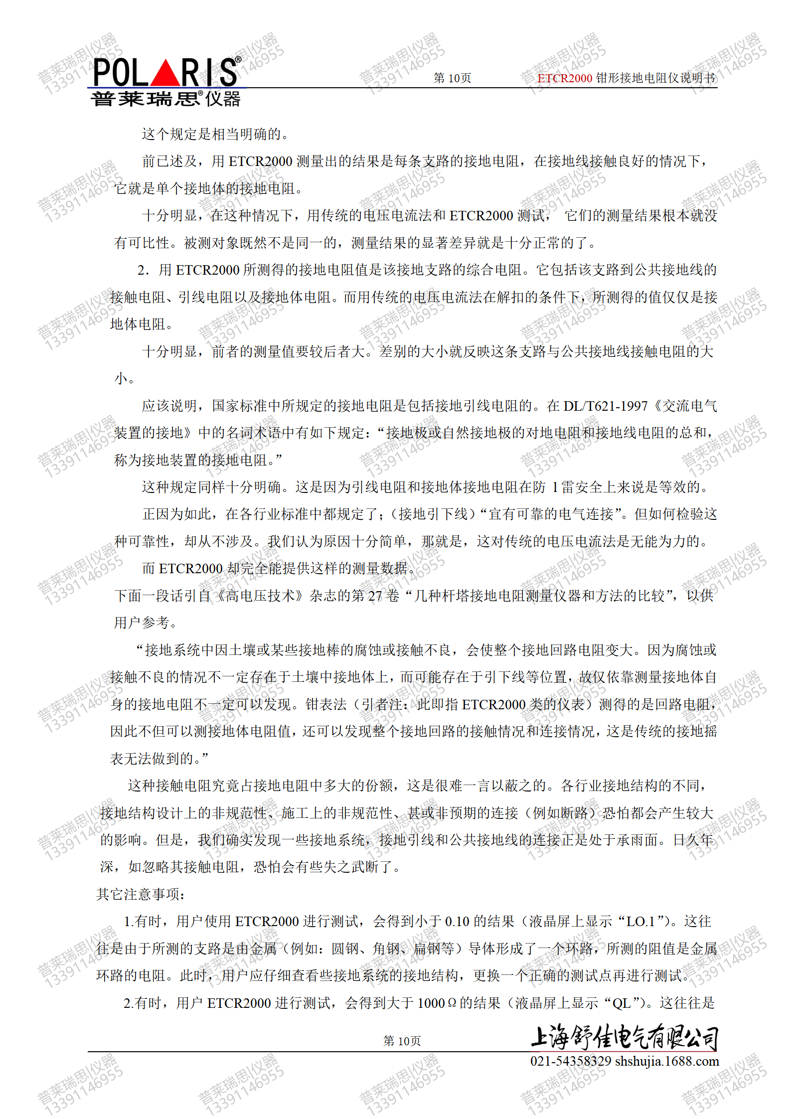国家有关部门对ETCR2000与传统电压电流法对比试验的结果说明,它完全可取代传统的接地电阻测试方法,对接地电阻值给出可信的结果。