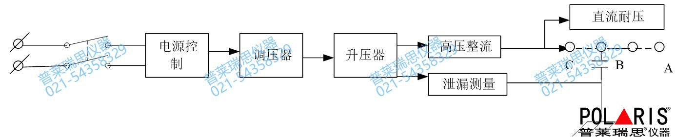 本设备主要有控制部分(低压)和高压整流,放电和测试部分组成,高压部分与外壳留有足够的安全空间。